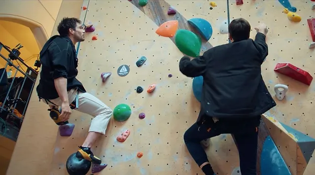 Dans un interview donné par Hugo Travers (Hugo Décryptes) dans la salle Climbing District Parisienne de Saint-Lazare, François Civil parle de l’escalade avec enthousiasme sur tous les plateaux, même quand on ne lui pose pas la question.